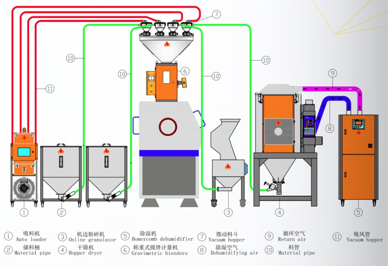 以太网接口、MODBUS、PROFIBUS通讯模块,可实现远程监控,并与挤出机、注塑机等主机进行的数据交换。