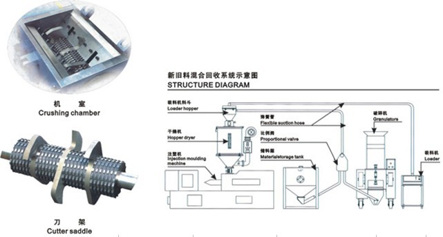 1.慢速塑料破碎机属于无筛网型塑料回收破碎机。低速运转,专门设计用于破碎注塑机产生的各种类型料头、次品的破碎回收利用。